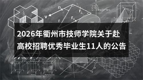 原标题:浙江省衢州市技师学院关于赴高校招聘2026年优秀毕业生的公告