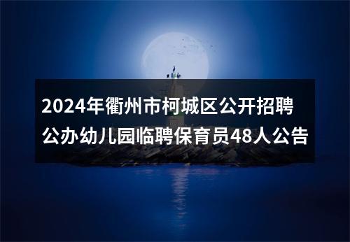 【2024年衢州市柯城区公开招聘公办幼儿园临聘保育员48人公告】相关岗位: